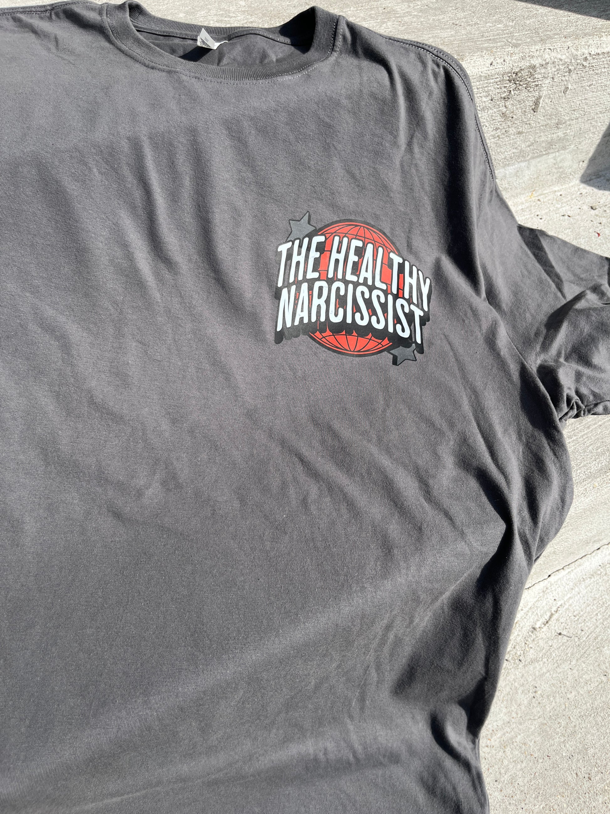 - Design: Left chest print featuring The Healthy Narcissist emblem – unapologetically self-aware